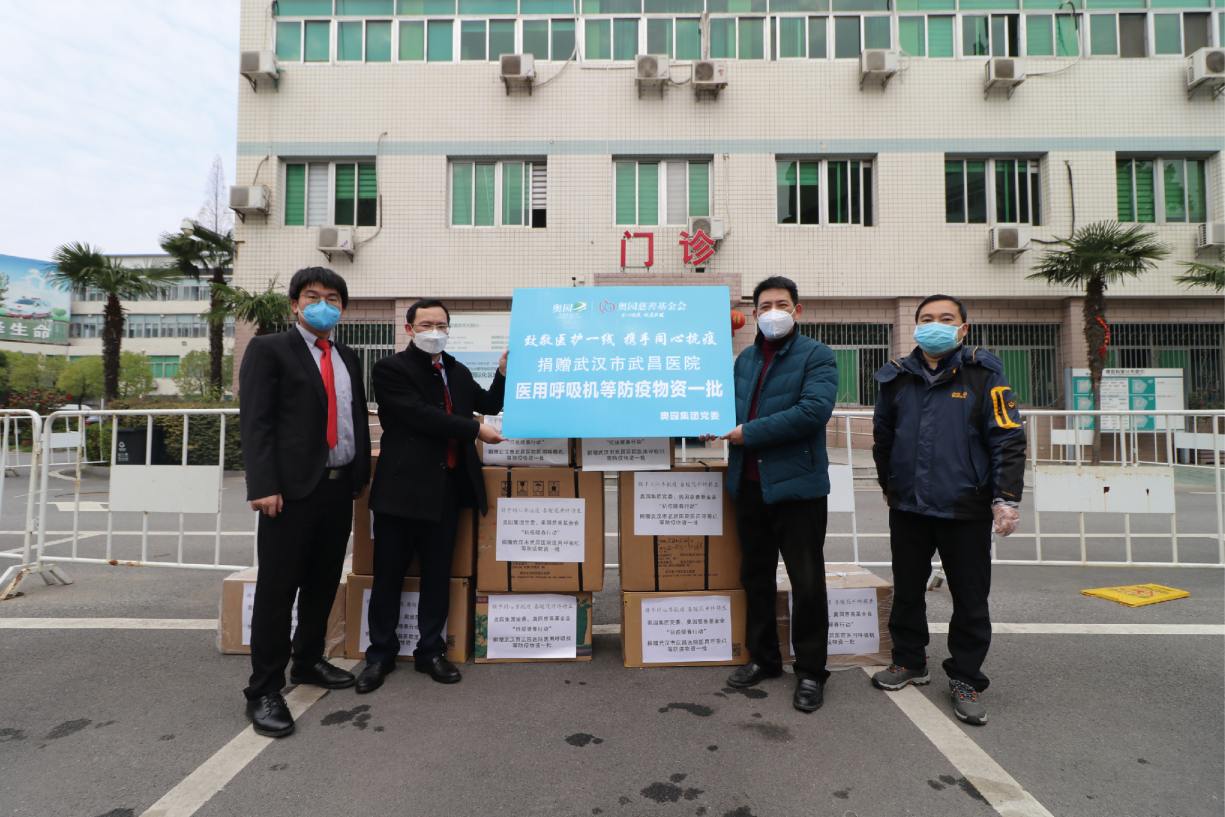2020年,奧園集團黨委、奧園慈善基金會向武漢市武昌醫院捐贈醫用呼吸機等防疫物資
