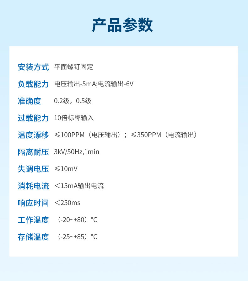 三相交流電流變送器采用新型電磁隔離,用于測量交流三相電流,特別使用于工頻50Hz正弦波三相交流電流,耗電損,體積小,重量輕,安裝簡便,穿孔輸入,無插入損耗,廣泛用于測量三相交流電流的場所。