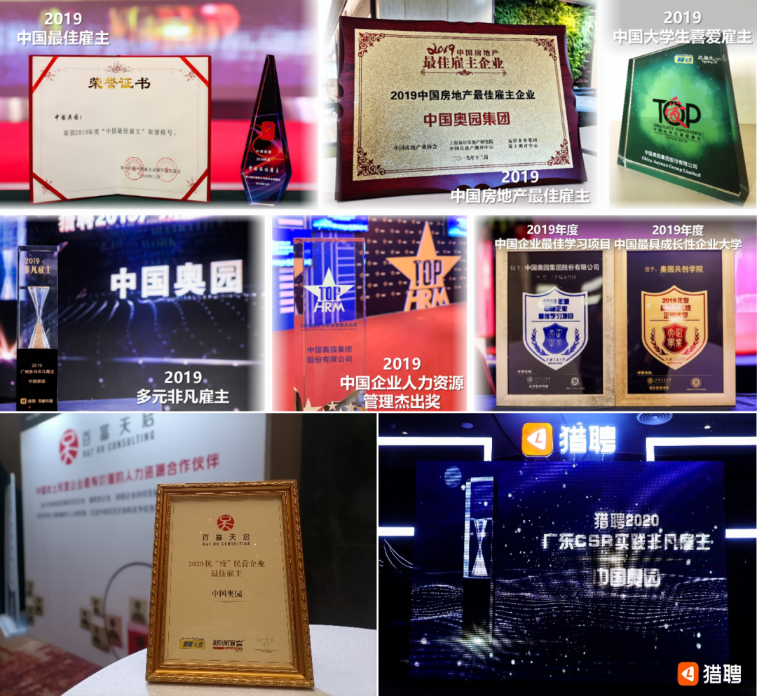 2019年,中國奧園一舉拿下“中國最佳雇主”“中國房地產最佳雇主”及“人力資源管理杰出獎”等8項雇主品牌和人力資源大獎,展現出其在雇主品牌和人力體系建設方面的顯著進步。