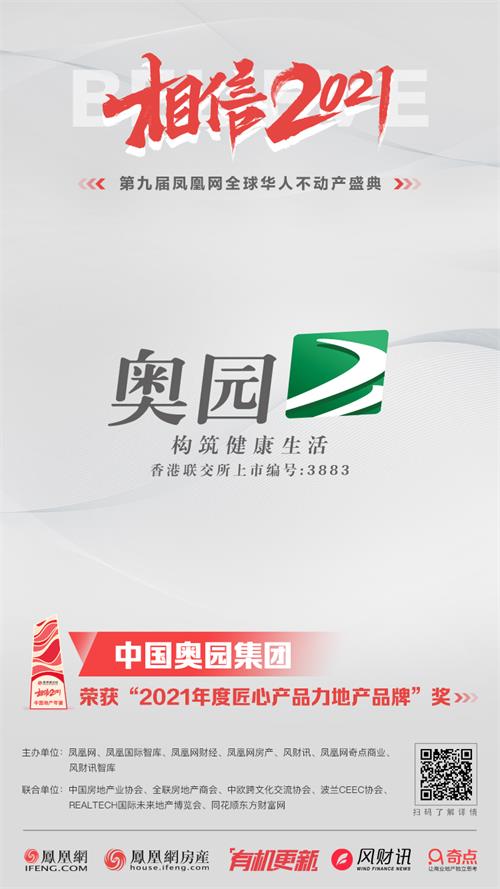 中國奧園集團榮獲“2021年度匠心產品力地產品牌”獎