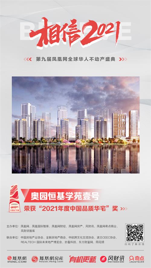 奧園恒基學苑壹號榮獲“2021年度中國品質華宅獎”
