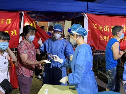 疫情就是命令,防控就是責任。從接到通知到集合出發,30分鐘時間,奧園黨團員志愿者們便全副武裝,奔赴“疫”線。他們有的人顧不上吃飯,連忙塞了幾口餅干,有的人簡單遠程安排家中長者兒童后直接沖往現場。“這次防疫志愿者服務,也是我有史以來做志愿者嗓門最大的一次,感覺喉嚨都快喊破了!連續作戰9小時到凌晨兩三點,說不累是騙人的,但是看到在現場,大家一起并肩作戰幫助市民進行掃碼登記指引,維持現場秩序,我們每個人都為組織為自己感到驕傲。”奧園黨員志愿者馮思蘊感嘆道。