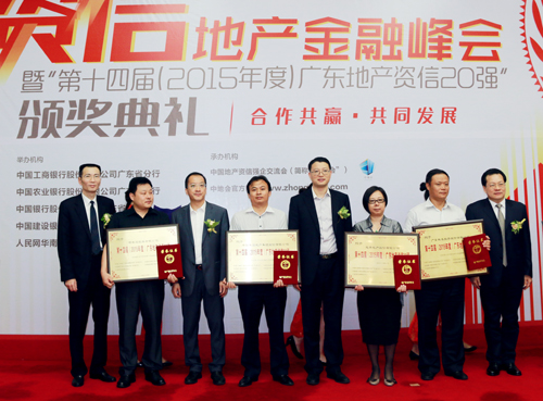 “第十四屆(2015年度)廣東地產資信20強”獲獎牌