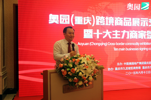 ???? ?(2015年6月13日——重慶)2015年6月13日,中國購物中心產業資訊中心、重慶市外經貿委、九龍坡區委、九龍坡區政府、高新區管委會、九龍坡區商務局、九龍坡區建委、九龍園區等相關政府部門領導,奧園商業集團領導和奧園重慶區域公司領導班子,以及永輝超市、萬達影城、海派健身等簽約進駐主力商家代表、各大媒體及社會各界近千人共同見證、出席,中國奧園地產集團傾力打造的奧園跨境商品展示交易中心及奧買家跨境電商平臺隆重落址重慶奧園盤龍壹號,打造西南首家大型跨境商品展示交易中心,同時舉行了十大主力商家簽約儀式和重慶奧園盤龍壹號SHOPPING MALL動工儀式,來自各大媒體記者進行了現場報道和提問。