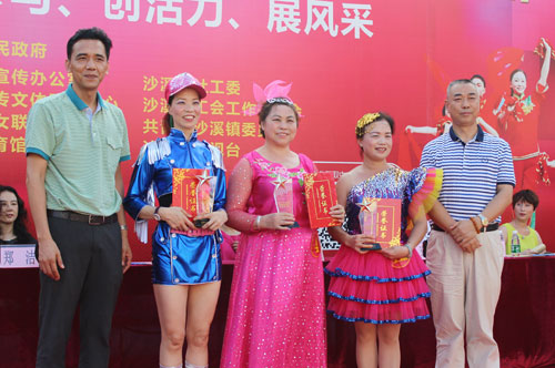 ????? 最后,大賽評委崔英美女士公布本次“奧園金域杯”廣場舞決賽獲獎名單,沙溪活力健身隊的《舞動中國》《習大大愛著彭媽媽》串燒和清風舞蹈隊的《風含情水含笑》獲得本次大賽的金獎。