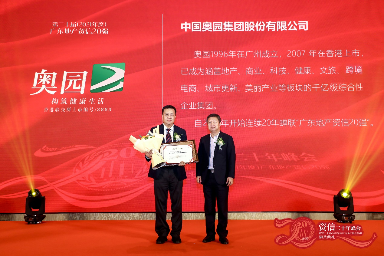 資信實力標桿 中國奧園連續20年榮膺“廣東地產資信20強”