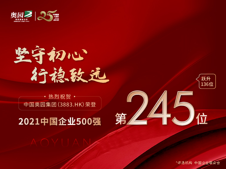 勁升136位 中國奧園榮登2021中國企業500強第245名