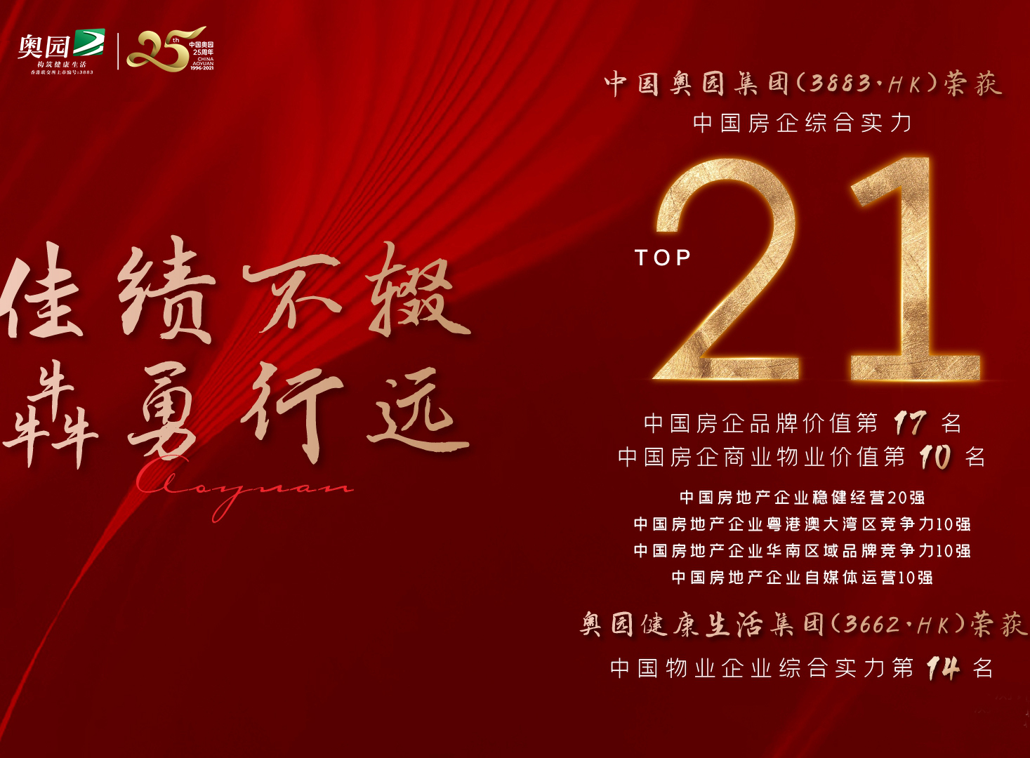 一日攬獲多項大獎!中國奧園躍登房企綜合實力第21名