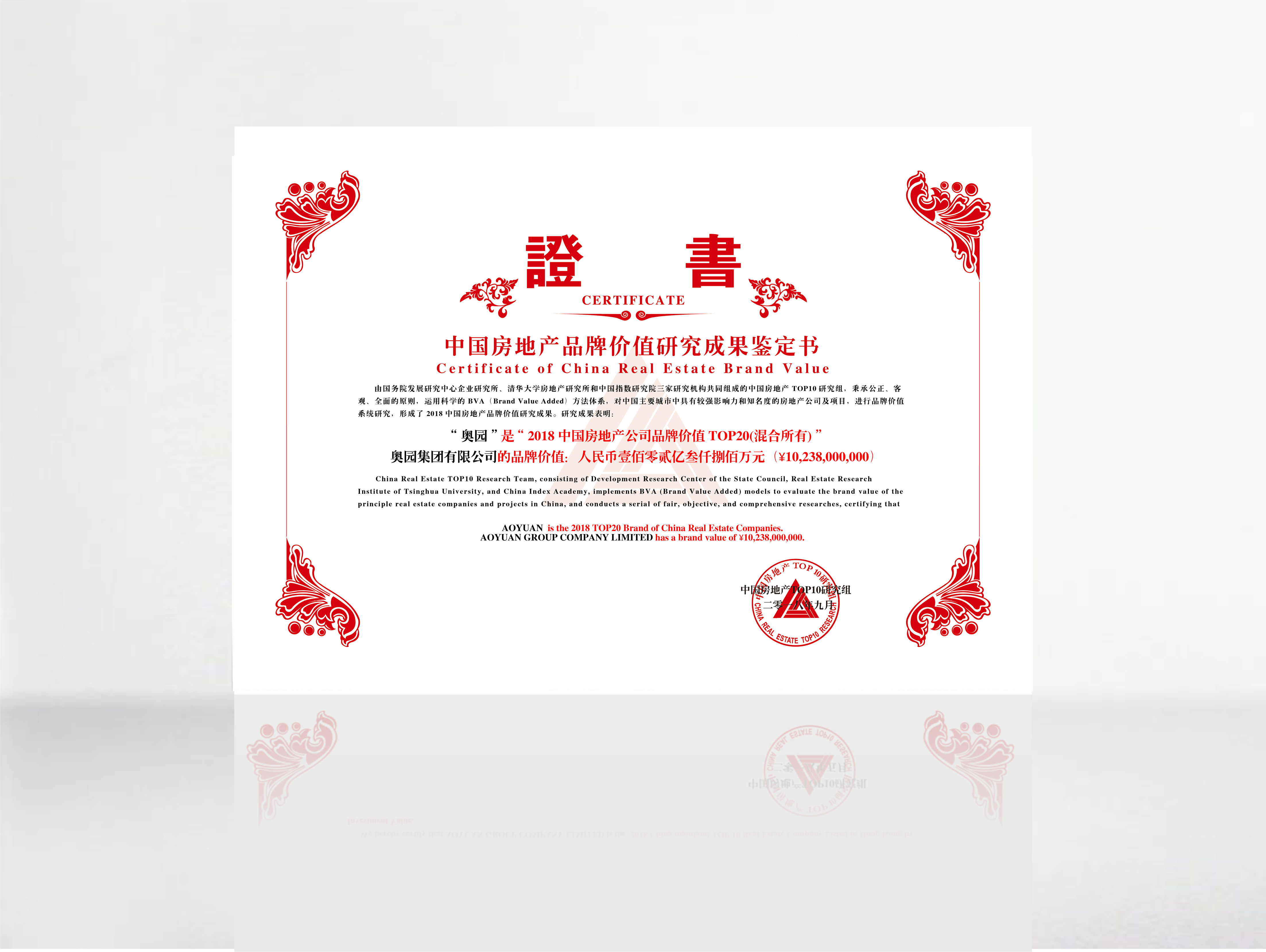 奧園榮獲2018中國房地產公司品牌價值第15名