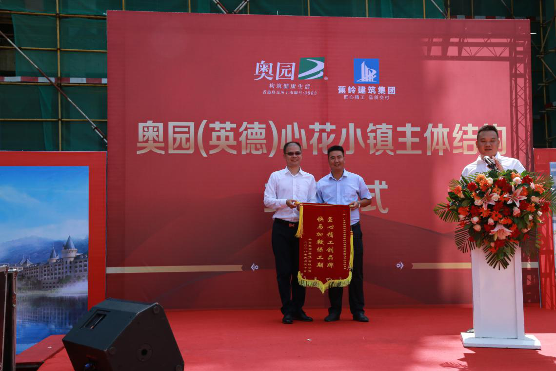 (2018年6月30日——清遠)6月30日上午,奧園英德心花小鎮施工現場彩旗飄揚,鞭炮齊鳴,在奧園集團、文旅集...