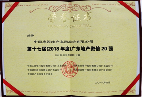 奧園連續十七年蟬聯“廣東地產資信20強”
