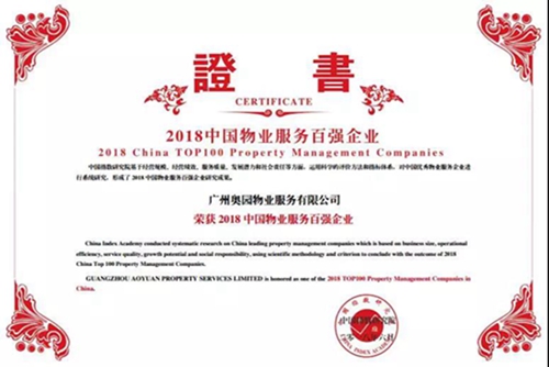 奧園榮登“2018年中國物業服務百強企業”第16位