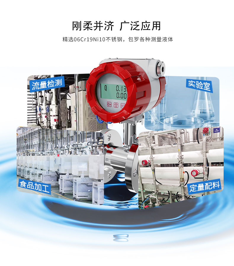 液體渦輪流量計基于力矩平衡原理,屬于速度式流量儀表。它具有準確度高、重復性好、結構簡單、壓力損失小、維修方便等優點,于測量封閉管道中低粘度液體的體積流量。在石油、化工、冶金、供水、造紙等行業中具有廣泛的應用。CN5