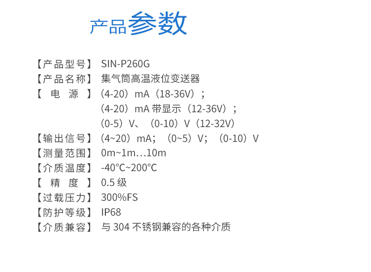 SIN-P260G殼體投入式液位計/水位計 高溫型 集氣筒式_
